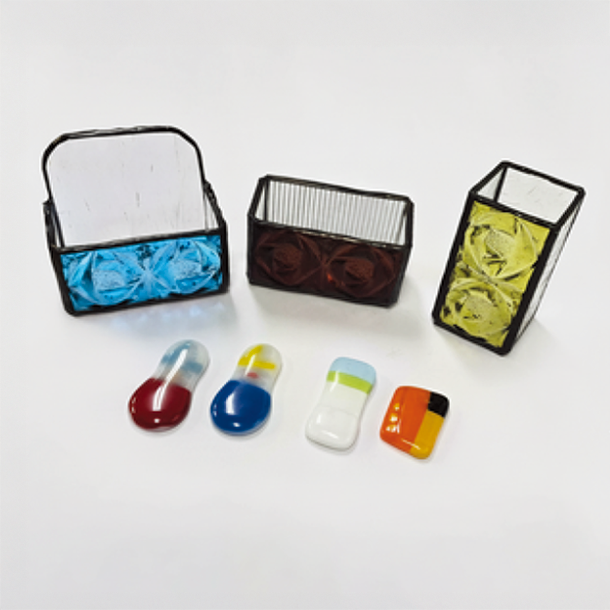 ガラスを電気炉で焼いて(フュージング)アクセサリーなど身の回りのものを。