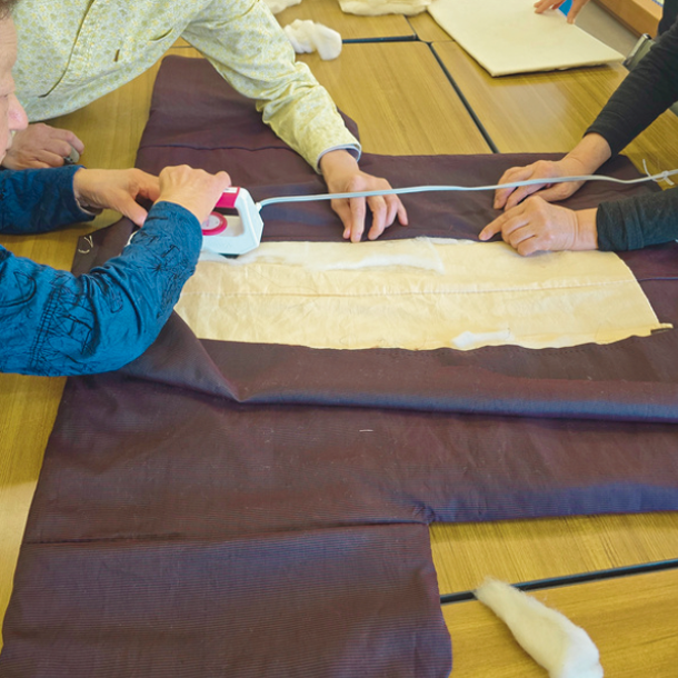 和裁道具の使い方、針の運び方を学び、単衣着物・浴衣、付下などを製作します。